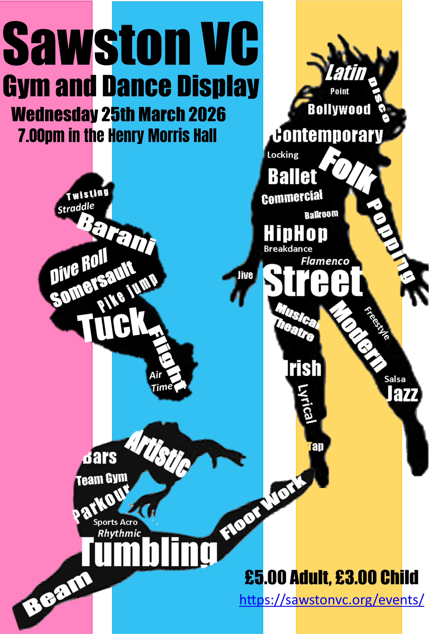 The Gym and Dance Display has now sold out. If you would like to be put on a waiting list for any returned tickets, please contact Head of PE, Mrs Harvey, on jharvey@sawstonvc.org.