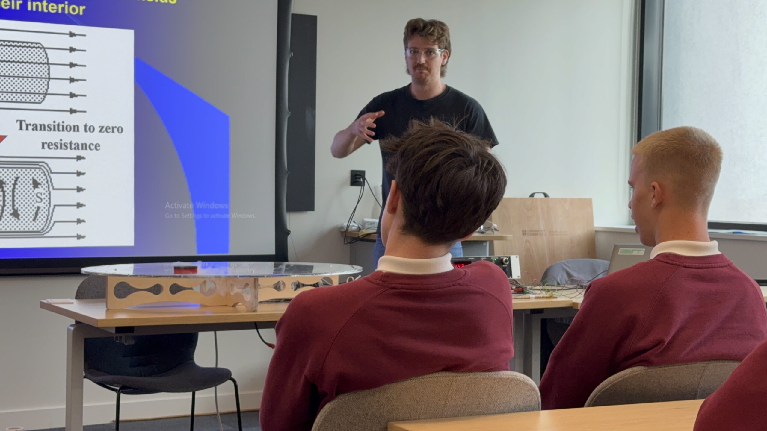 The Science department recently took 57 Year 11 pupils to the “Physics at Work” exhibition, held at Cambridge University’s new Ray Dolby Centre. We saw a mix of exhibitors from both research and industry. The exhibition focused on inspiring pupils, showing them the range of career opportunities that are made available by studying physics and the possible examination choices they might consider for Year 12. One of the highlights of the trip was a hands-on demonstration of the practical uses of superconductors: using liquid nitrogen to operate a model maglev train on magnetic rails.